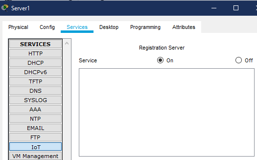 There are no devices associated with this new server; In an earlier lab (not shown), I attached them to 'Home Gateway'. Go into the Config tab of any IoT device and connect to the new server;
