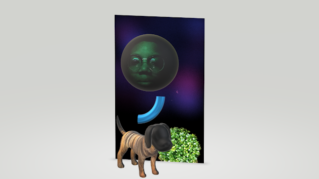 I can put texture and stickers on 3D objects - A wood texture is on the dog, and an uploaded image of me is on that half-dome up there, looking very Majora's Mask-esque.